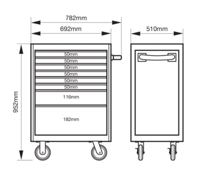 - 8 drawers heavy-duty tool trolley is based on a solid steel dual-walled case construction