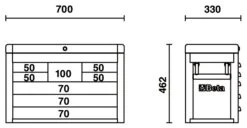 • 7 drawers (588×367 mm) with ball bearing slides: