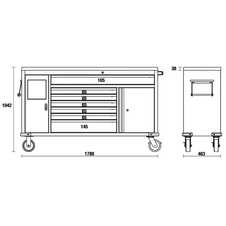 - 6 drawers (782×406 mm) with ball bearing slides: