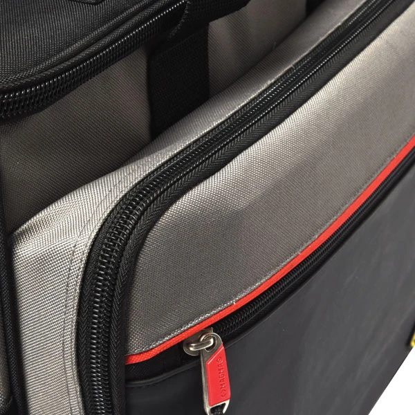 - Extra-wide main compartment featuring a red lining for high tool visibility.