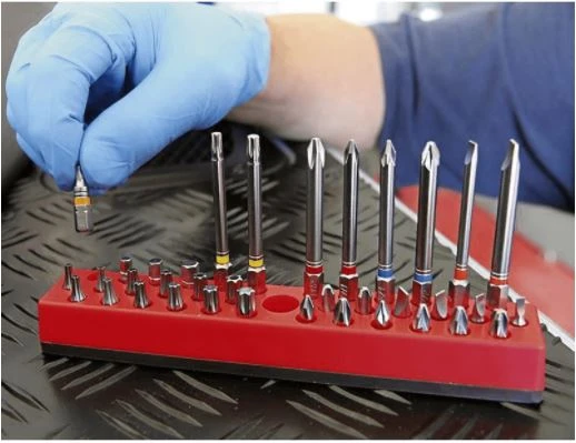 - Composite holder with strong magnetic base helps maintain a tidy workstation.
